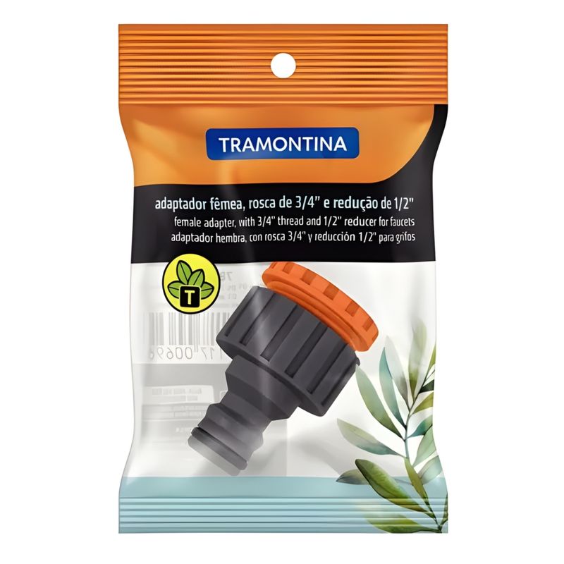 Fabricado em plástico resistente, proporciona durabilidade e facilidade de instalação, sem a necessidade de ferramentas complexas. Possui rosca fêmea de 3/4 polegadas e redução interna para 1/2 polegada, garantindo um encaixe seguro e firme.