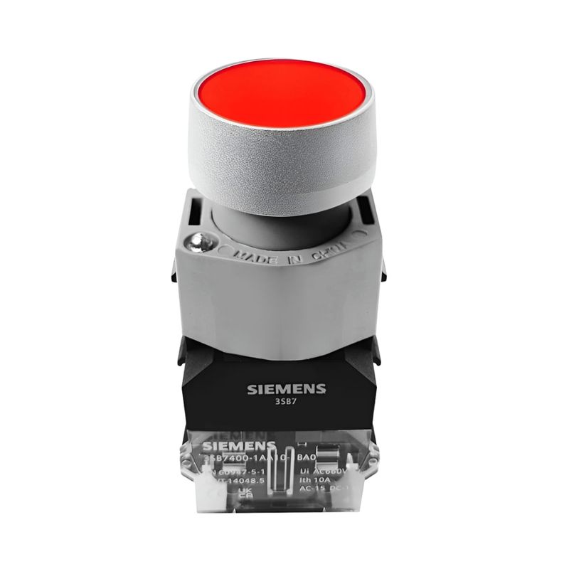 O Botão 22mm Iluminado Vermelho 1NF da Siemens é ideal para painéis de comando. Com contato normalmente fechado (NF) e iluminação em LED vermelho, é perfeito para aplicações industriais e comerciais que exigem sinalização e segurança. Compatível com 220V/CC.