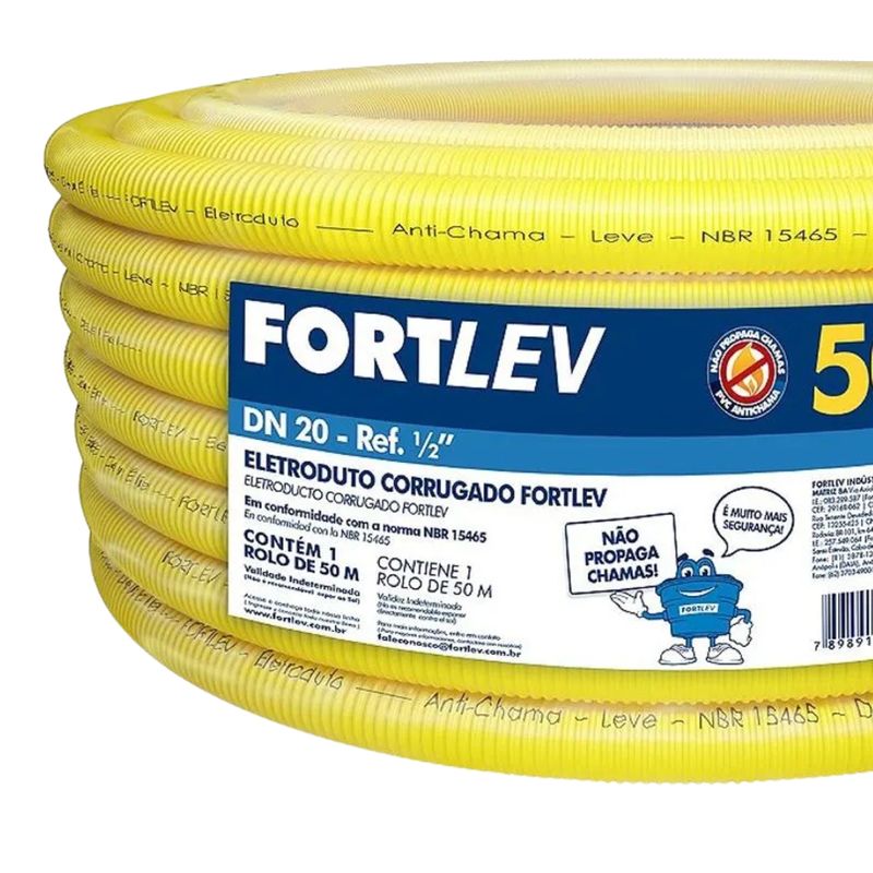O conduíte flexível Fortlev 1/2” é a escolha ideal para a proteção e organização de fios e cabos em instalações elétricas residenciais, comerciais e prediais. Fabricado em PVC de alta qualidade, proporciona excelente flexibilidade, facilitando a passagem dos cabos mesmo em percursos com curvas e desvios, sem perder resistência mecânica. Sua cor amarela segue as normas de identificação para eletrodutos corrugados, garantindo segurança, padronização e confiabilidade à instalação. Fornecido em rolo com 50 metros, é indicado para aplicações embutidas em paredes, lajes e pisos, oferecendo maior rendimento na obra, durabilidade e proteção eficiente da fiação elétrica.