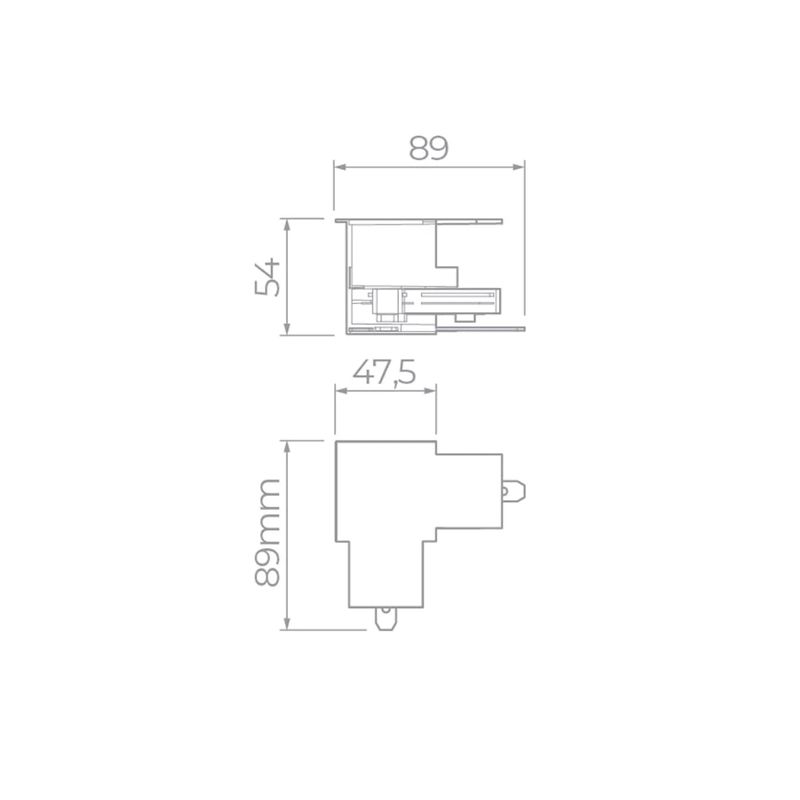 O Conector L para Trilho de Embutir Trace da Stella é um acessório técnico que permite unir dois segmentos de trilho eletrificado de embutir em um ângulo de 90°, mantendo a continuidade elétrica e o acabamento discreto do sistema de iluminação modular Trace.