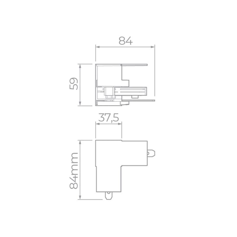 Com acabamento em polipropileno branco, este conector integra-se aos trilhos de sobrepor da linha Trace, garantindo um visual discreto e profissional em esquinas, cantos e mudanças de direção de trilhos em ambientes internos.