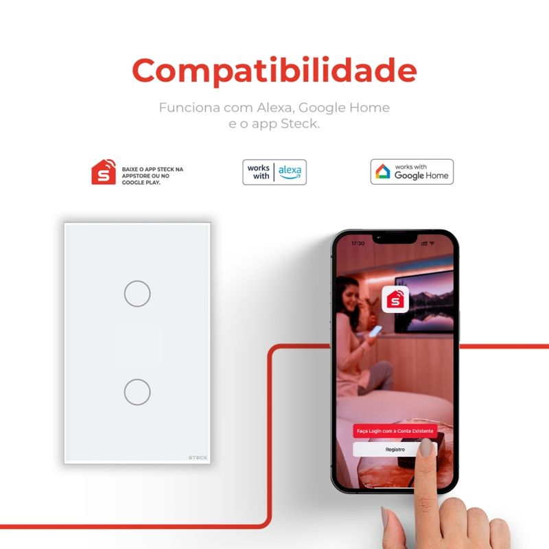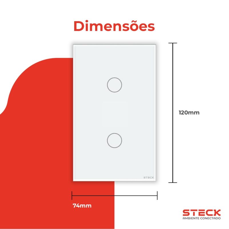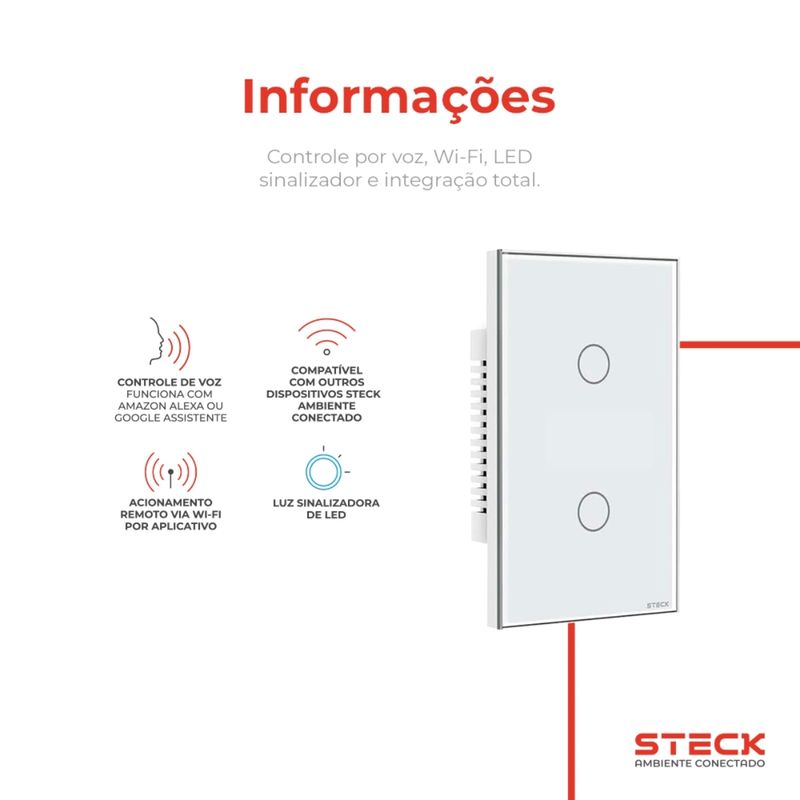 Conjunto Montado Interruptor 4x2 Touch Smart 2 Módulos Branco Steck
