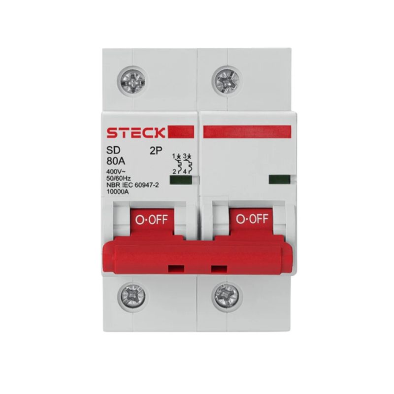Garanta proteção eficaz e segurança elétrica para sua instalação com o Disjuntor Bipolar 80 A Curva C 10 kA da Steck (modelo SDD2C80). Projetado para interromper automaticamente a corrente em situações de sobrecargas e curtos-circuitos, este disjuntor é ideal para quadros de distribuição em ambientes residenciais, comerciais e industriais.