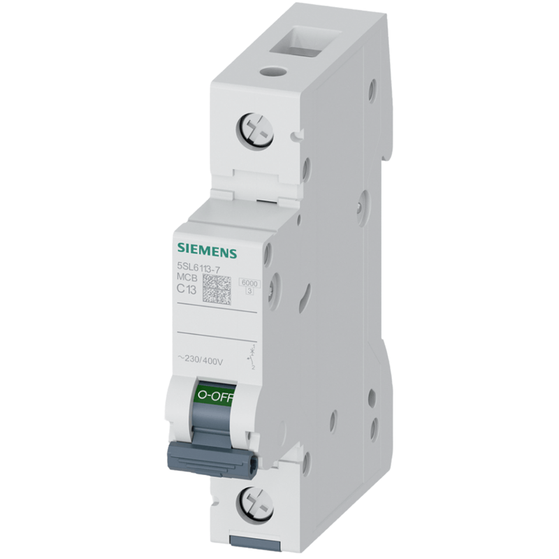 O Disjuntor Siemens 5SL6113-7 é monopolar, com corrente nominal de 13A, curva C e tensão de 230V. Atende à norma NBR NM 60898-1 e possui capacidade de interrupção de 6kA, proporcionando proteção confiável para circuitos elétricos residenciais e industriais leves.