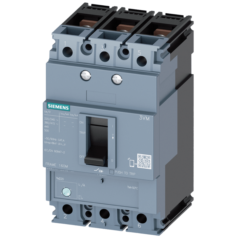 O disjuntor 3VM1 oferece proteção eficiente para instalações elétricas com alta capacidade de comutação de até 25kA.