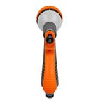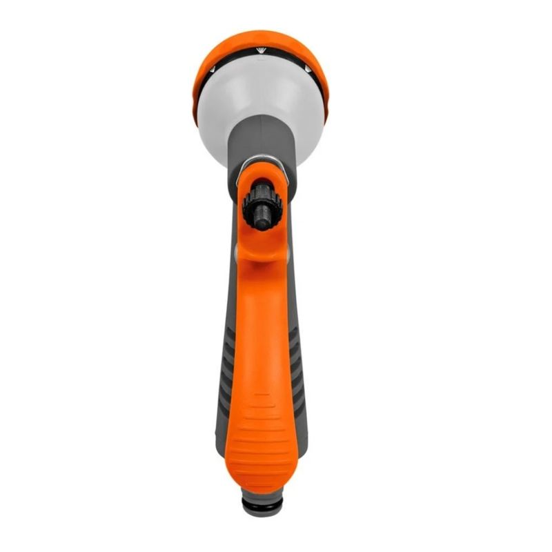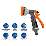 Compatível com sistemas de engate rápido, este esguicho permite selecionar entre 6 tipos de jato, adaptando o fluxo de água para rega de plantas, lavagem de carros, limpeza de pisos e outras tarefas com praticidade.