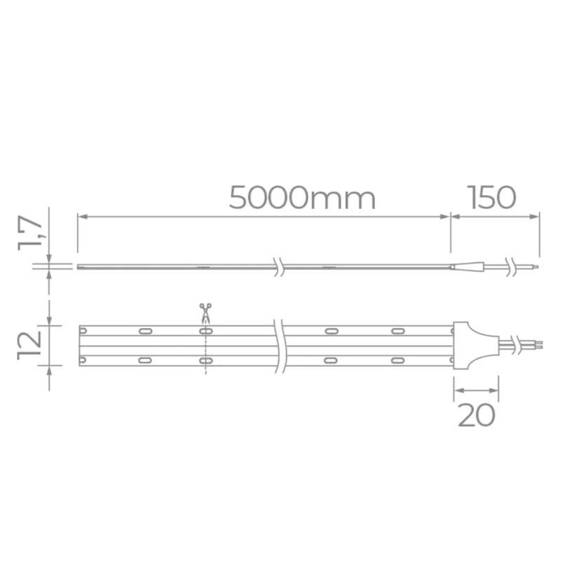Com potência de 25W por metro e tecnologia COB de alta densidade, esta fita produz iluminação uniforme e contínua ao longo de seus 5 metros, destacando sancas, prateleiras, painéis e detalhes arquitetônicos com estilo e eficiência.
