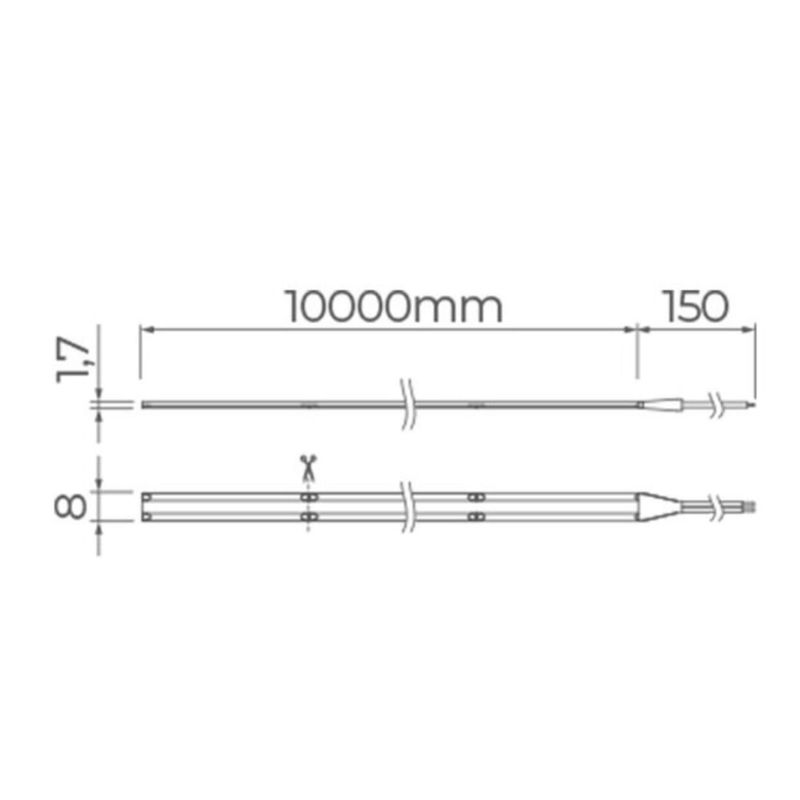 Com potência de 10 W por metro e alimentação em 24 V DC, esta fita proporciona até 600 lm por metro, iluminação contínua e uniforme ao longo de seus 10 metros. Pode ser cortada em segmentos de aproximadamente 4,16 cm para adaptar ao seu projeto.