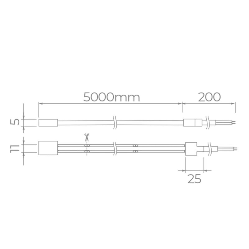 Com 5 metros de comprimento e tecnologia CSP com até 320 LEDs/m, esta fita proporciona iluminação contínua e uniforme com cerca de 720 lm por metro. O produto possui proteção IP67, garantindo resistência contra poeira e água, e pode ser cortado a cada 5 cm conforme a necessidade do projeto.