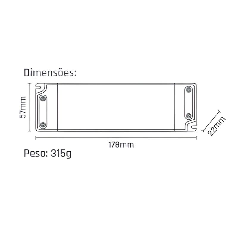 Com saída 12V, potência de 60W e corrente de 5,0A, é indicada para fitas LED e outros dispositivos compatíveis.