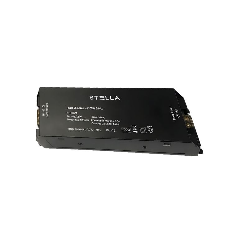 A Fonte Dimerizável LED 24V 100W da Stella (modelo STH9882) é ideal para alimentar fitas, painéis e módulos de LED de 24V com eficiência, estabilidade e controle de intensidade luminosa (dimerização). Com saída de 24Vcc e potência de até 100W, ela atende projetos que exigem desempenho robusto e flexível em iluminação residencial ou comercial.