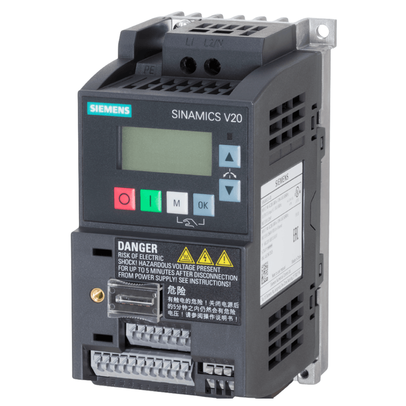 O Conversor de frequência SINAMICS V20 é simples, robusto e eficiente, projetado para aplicações industriais e comerciais na faixa de tensão 1CA 200 V a 240 V.