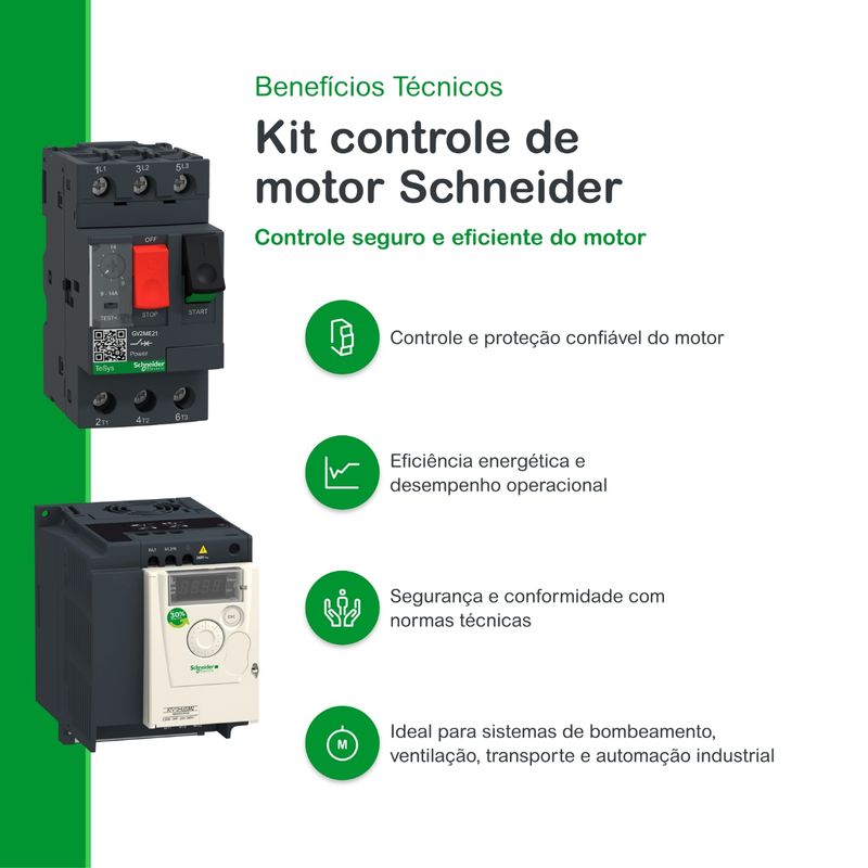 – conjunto com inversor de frequência e disjuntor motor para controle e proteção de motores elétricos.
