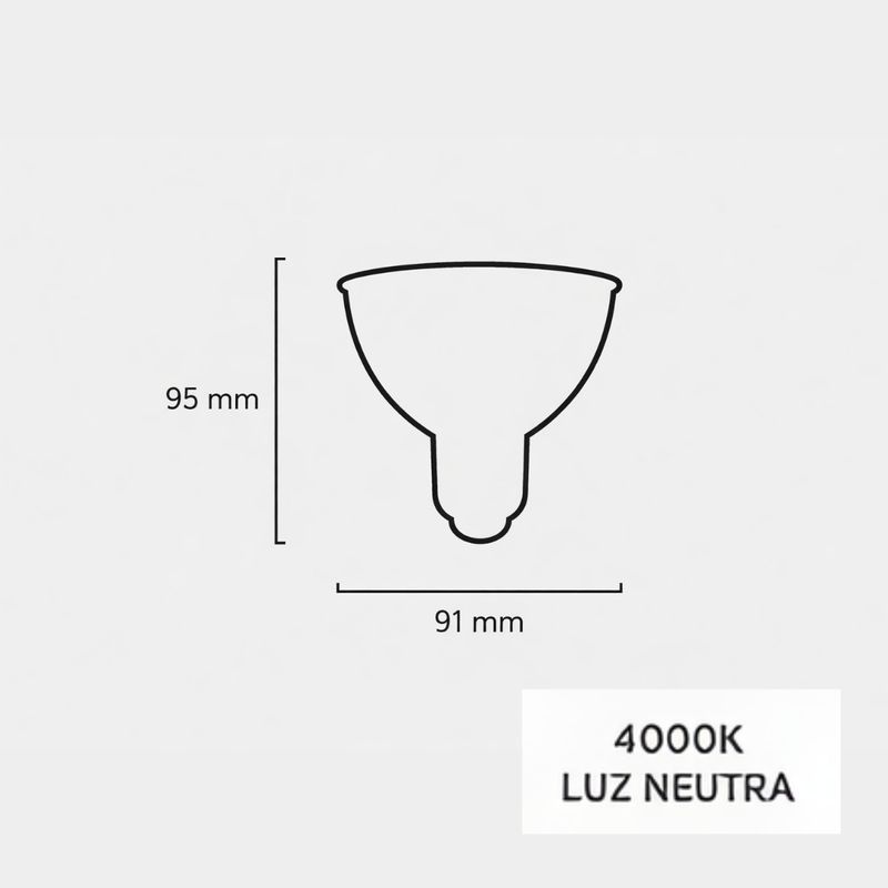 Lâmpada de LED, modelo PAR30 Crystal, potência 10W, ângulo 38°, fluxo luminoso 800lm, temperatura de cor 4000K - Luz Neutra, encixa no soquete E27, índice de proteção IP40 e certificada pelo Inmetro.