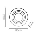 A Luminária de Embutir Redonda SE-330.1057 da Save Energy é uma luminária de teto com face plana, projetada para instalação embutida em tetos de gesso, madeira ou PVC. Compatível com lâmpadas PAR30 LED com soquete E27 (lâmpada não inclusa), oferece iluminação eficiente e direcionada para diversos ambientes internos.