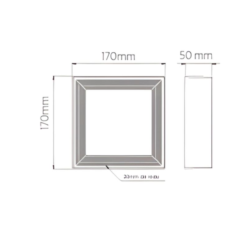 Seu formato quadrado de 17x17cm, na cor branca, aliado ao design recuado, proporciona um visual elegante no teto.