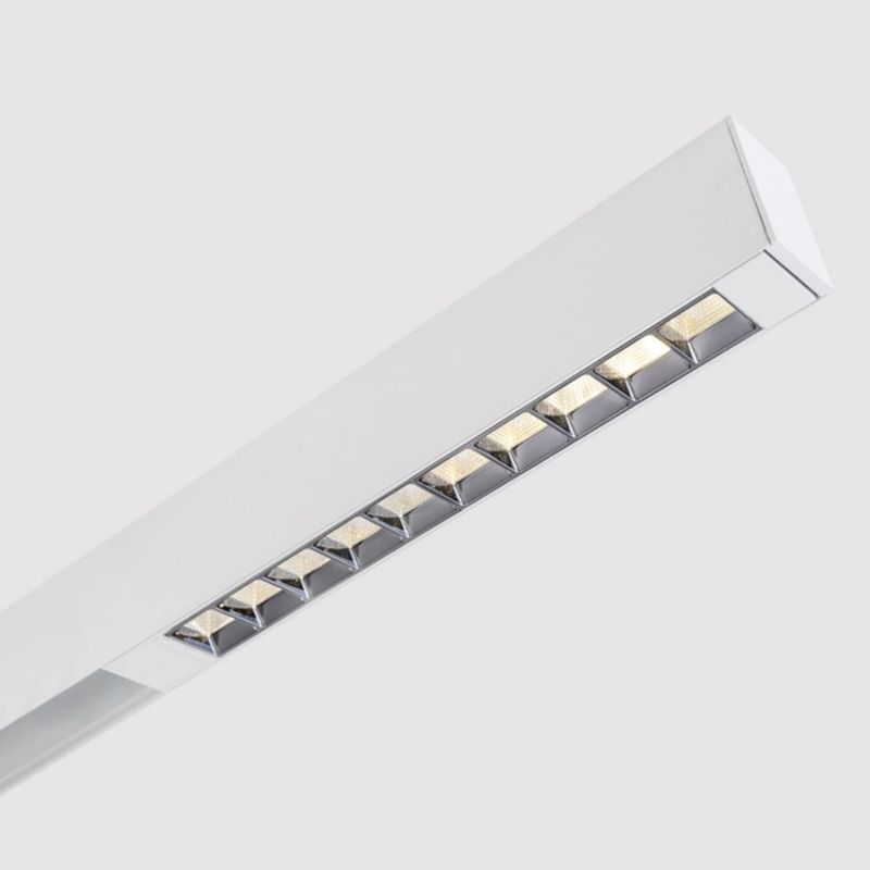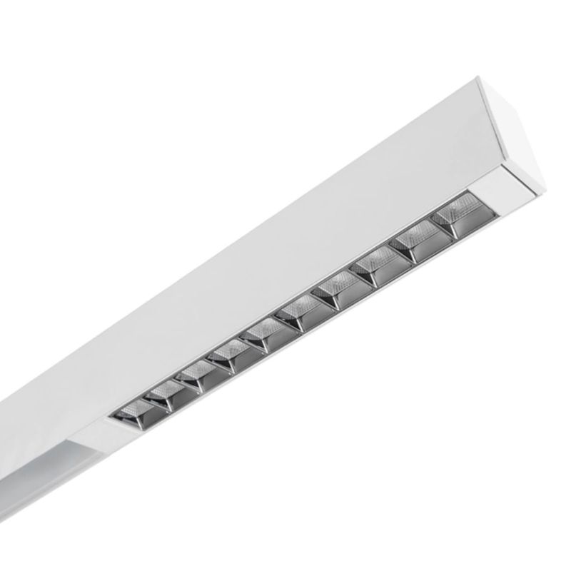 O sistema Trace permite a instalação e o reposicionamento de múltiplas luminárias ao longo do trilho sem fonte adicional, e o produto já vem com driver integrado – pronto para uso em redes bivolt.