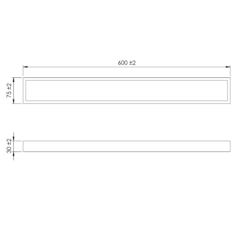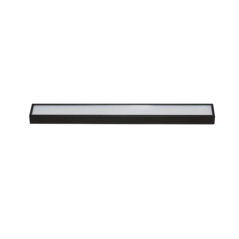 Painel de LED Retangular Compact Linear de Sobrepor Jet Black de 60x7,5x3cm, potência 18W, ângulo 120°, fluxo luminoso 1700lm, índice de proteção IP20.