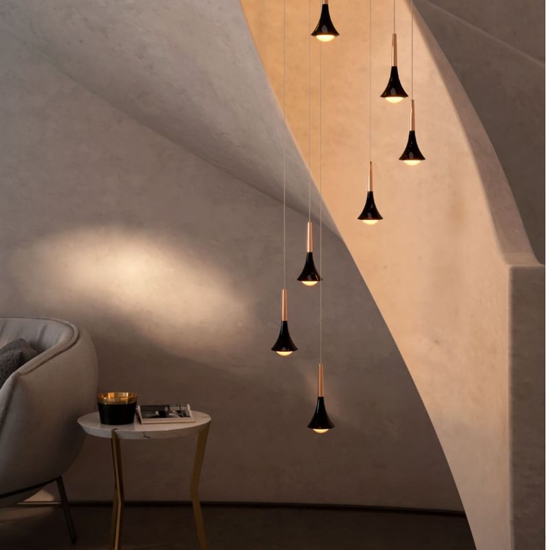 dourado e preto, este pendente combina estética refinada com alta performance luminosa.