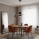 Salas de estar ou jantar com mesa central ou canto de leitura, quartos elegantes com luminária suspensa ao lado da cama, bancadas de cozinha ou ilha gourmet, halls de entrada ou corredores que merecem destaque decorativo.