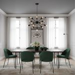 13 soquetes E27 distribuídos em hastes que se projetam do núcleo central, esta luminária cria um efeito visual de explosão simétrica, sendo ideal para ser o ponto focal de ambientes com
