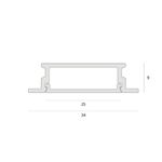 Com uma largura de **$25\text{mm}$**, este perfil oferece o equilíbrio perfeito entre discrição e capacidade luminosa, sendo versátil para aplicação em iluminação geral ou de destaque.