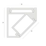 Projetado especificamente como Cantoneira, este perfil é ideal para ser instalado no encontro de parede com teto (sanca invertida), cantos internos de nichos, armários e prateleiras, proporcionando um efeito de luz sutil e refinado.